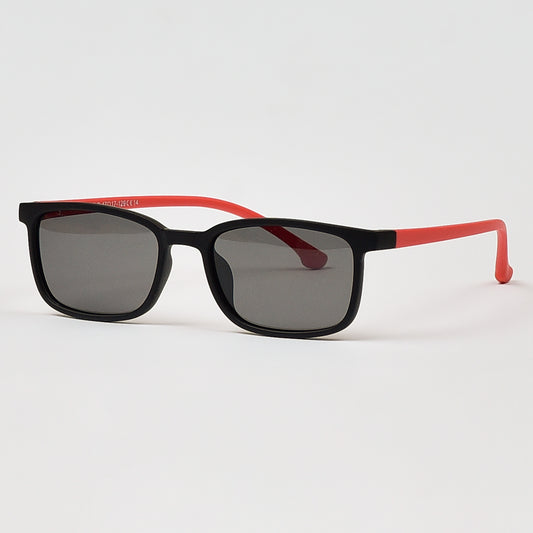 Polarized Square Sunglasses with Black frame and Red Temples, for boys and girls.